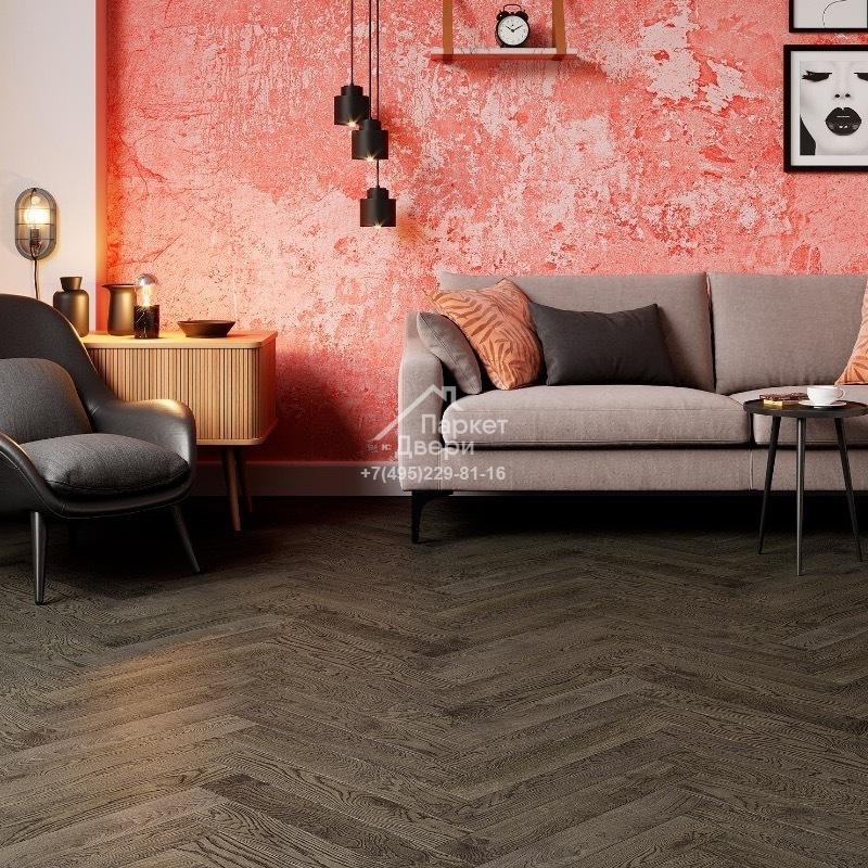 Паркетная доска Ёлка Esta Parket Дуб 14032 Herringbone Nordic S Lava Grey 600x100x14 мм
